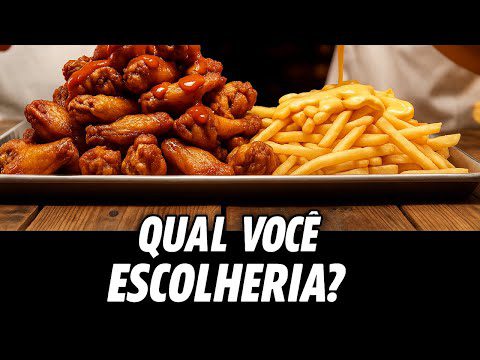 Qual você escolheria ? Prepare-se para uma experiência única de ASMR Food onde você terá que fazer escolhas deliciosas! 🍗🍟 Neste vídeo, apresentamos uma combinação irresistível: crocantes asas de frango cobertas com molho especial e batatas fritas douradas e sequinhas.…